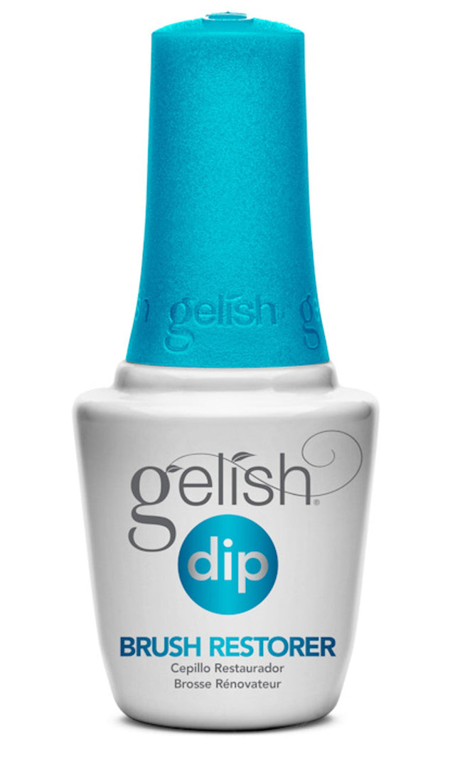 Gelish Dip Brush Restorer - Brush Cleaner. A solvent based for fast and easy removal of product build up. If your Base Coat or Top Coat brush hardens during application, place the hardened brush into the Brush Restorer and close tightly, allow to soak for 5-10 minutes. And allow the brush to dry. Size 0.5oz/15ml.