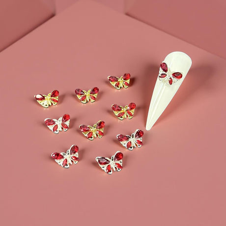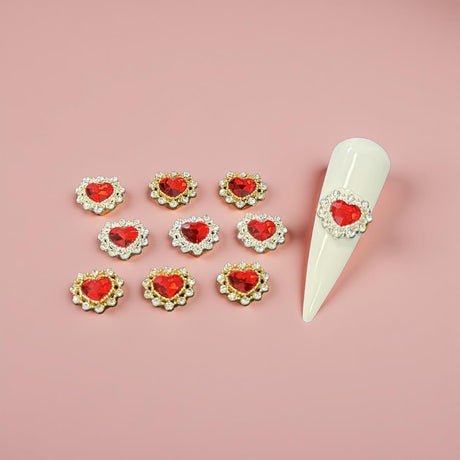 Rhinestone Red Heart Charm - Silver & Gold - 10pc