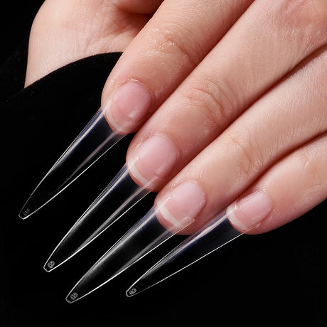 Full Cover 3XL Stiletto Clear Nail Tips Bag 0 to 11 - 360pc