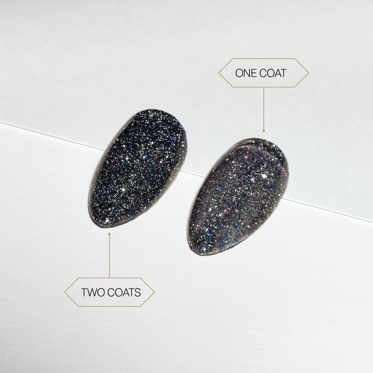 Astral Gel Couleur is a collection of 40 shades in 4 light-refracting, otherworldly finishes—Flash Glitter, Pearlescent, Velvet, and Shimmer Cat Eye. These streak-free, self-leveling formulas leave a unique energetic signature on the nail, empowering you to create looks that resonate on a spiritual level.