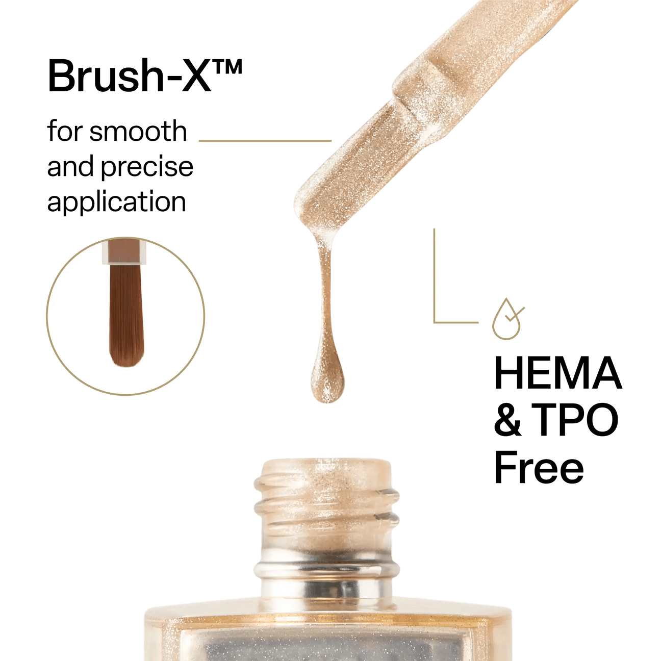 Plus, each shade comes with our game-changing Brush-X™ in-bottle. Made of dense PBT fibers and inspired by Japanese art brushes, Brush-X™ makes it easier for you to achieve a precise, even application every time.