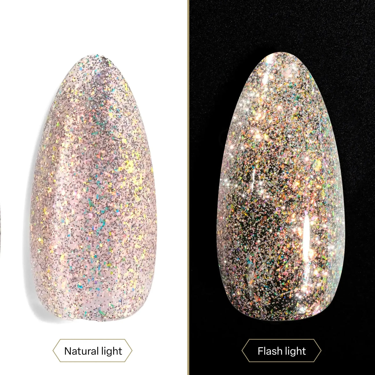 10 Flash Glitter Shades: From silver with multicolored reflects to popping hot pink, Flash Glitter has a silky finish and is made with ultra-bright glitters suspended in a gel base that create an electrifying illumination under bright lights and flash photography.