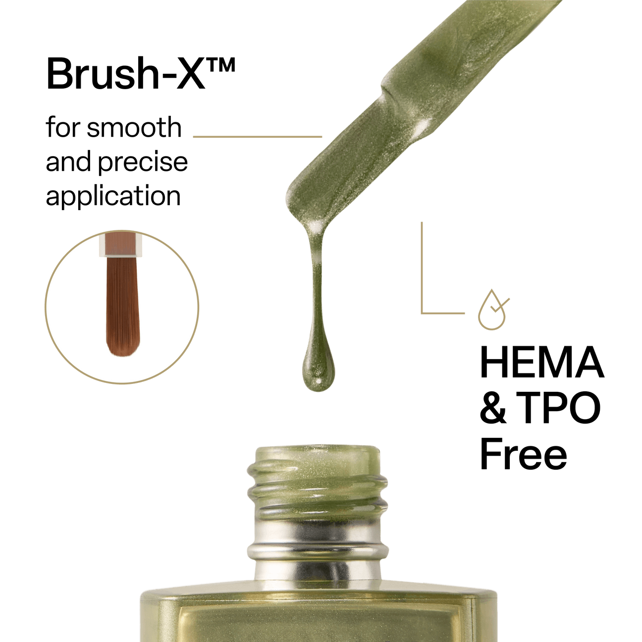 Plus, each shade comes with our game-changing Brush-X™ in-bottle. Made of dense PBT fibers and inspired by Japanese art brushes, Brush-X™ makes it easier for you to achieve a precise, even application every time.