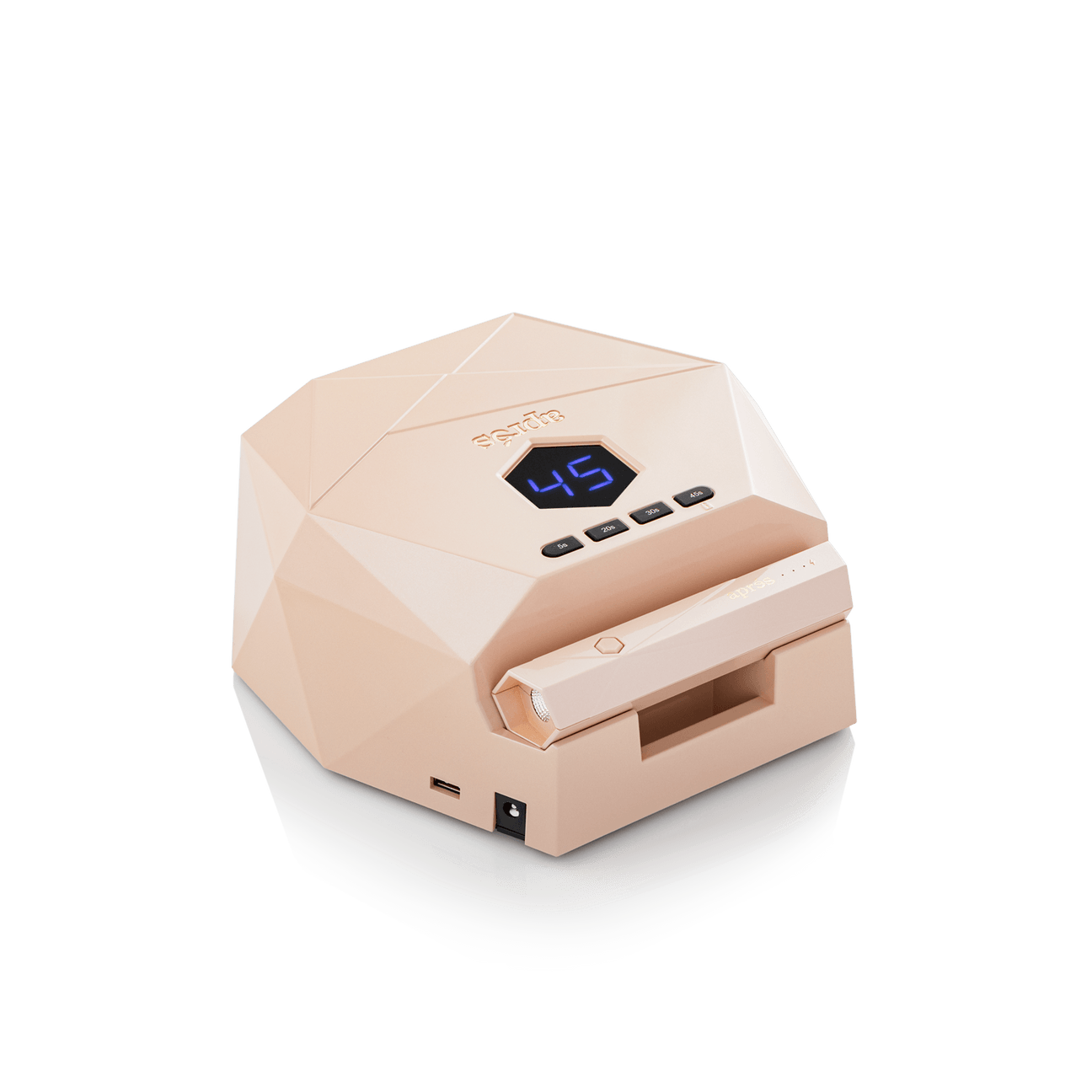 The new and improved Alpha 2-in-1 LED lamp is not only stylish but was designed with the sole purpose of creating the best and most functional professional nail lamp. The Alpha 2-in-1 LED Lamp is offered in two different acetone-resistant shades—black, nude, and white. It is also equipped with four different timer settings, including a 45 sec gradual upswing setting for those with more sensitive nail beds. A magnetic base and its cordless option makes it easy to move this lamp from the nail station to the pedicure station. And the second generation 2-in-1 Alpha LED lamp is also able to mix and match with any of the new Omega Flash Cure Lights. So nail professionals can create a truly custom LED lamp found unlike anywhere else in the market.