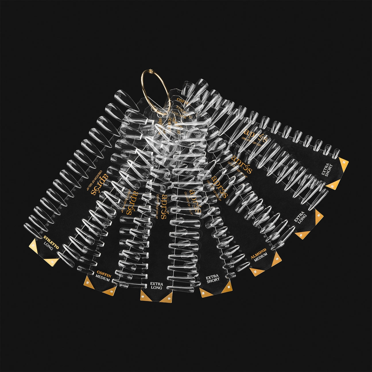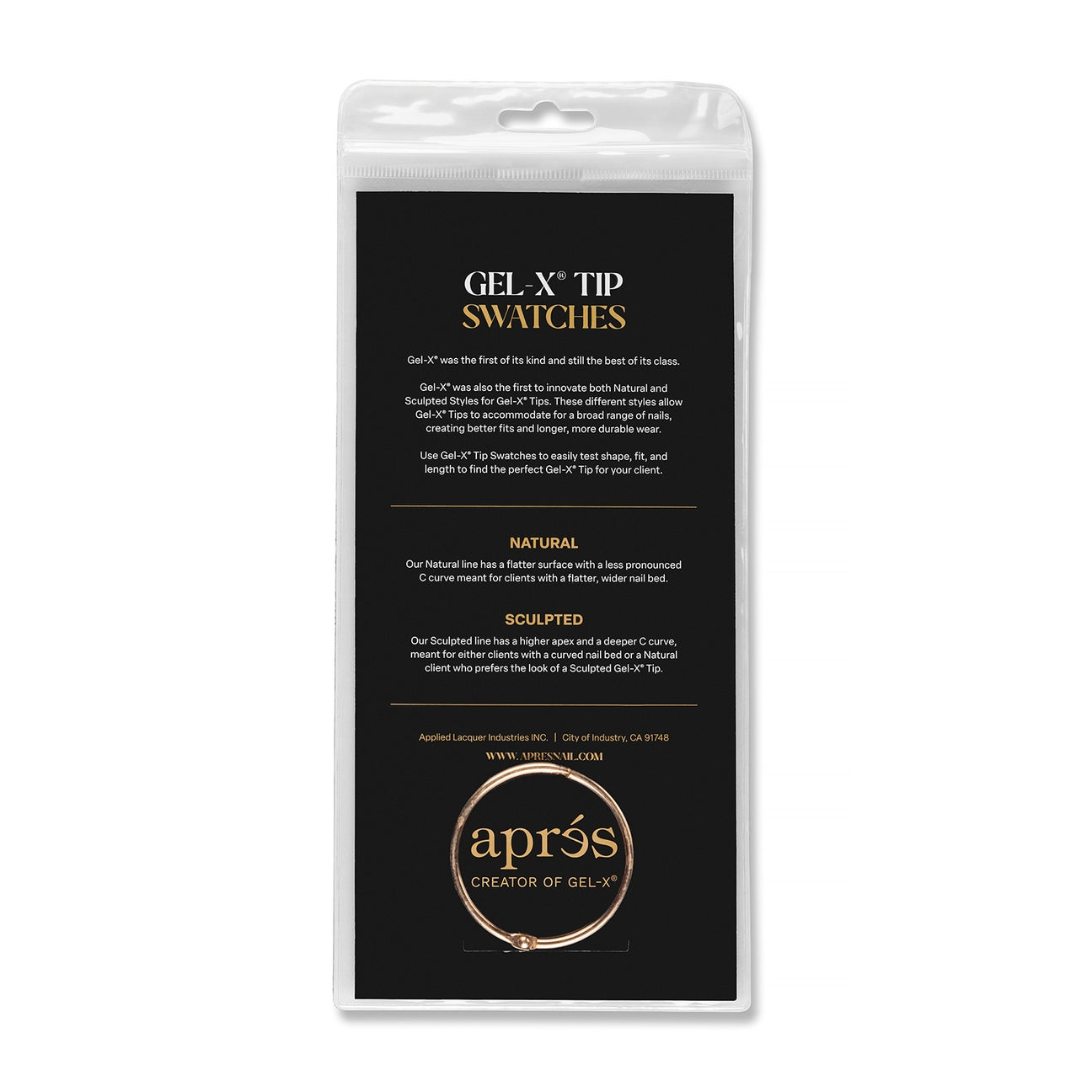 The Gel-X® Tip Swatches assists in discovering and identifying the perfect Gel-X® Tip for your client. Featuring a wide variety of styles, lengths and shapes, giving you an advantage to improve the nail application process with speed and ease. Crafted from sturdy acrylic, these swatches resist bending and breaking, ensuring long-term reliability. Each swatch is clearly labeled with the tip shape, length, and size, making it simple to find the perfect fit and style.