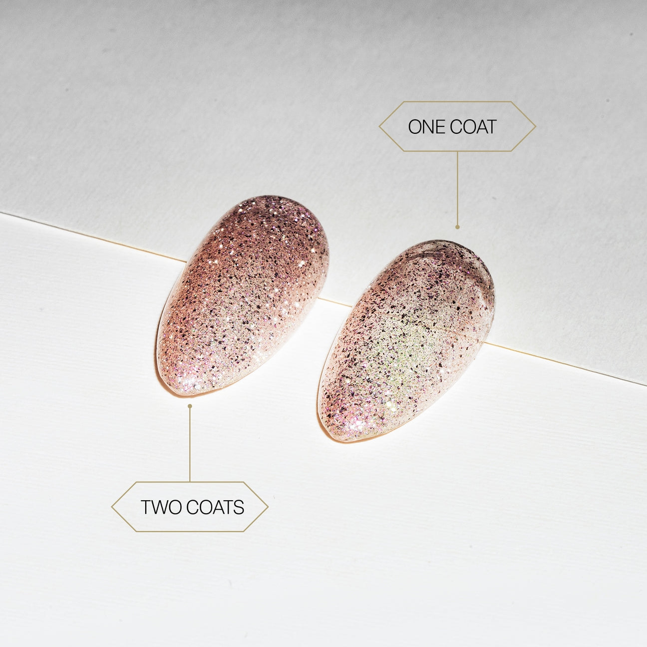 Astral Gel Couleur is a collection of 40 shades in 4 light-refracting, otherworldly finishes—Flash Glitter, Pearlescent, Velvet, and Shimmer Cat Eye. These streak-free, self-leveling formulas leave a unique energetic signature on the nail, empowering you to create looks that resonate on a spiritual level.