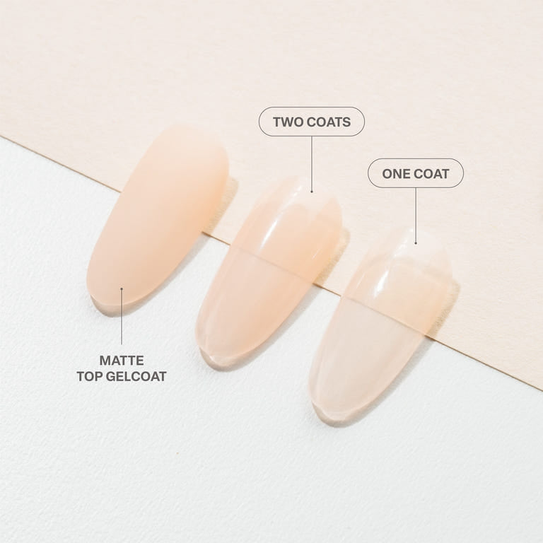After prepping the natural nail and applying Base Gel coat, apply a layer of Light & Shadow Sheer Gel Couleur then cure for 30 sec LED. Follow with an optional second coat for a more opaque finish, curing for 30 sec LED. Finish with the Après Non-Wipe Top Gelcoat. When applying on Gel-X Tips, NO base coat is needed.