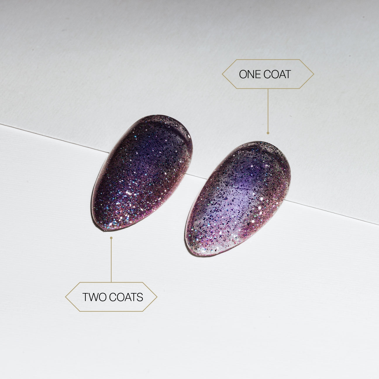 Astral Gel Couleur is a collection of 40 shades in 4 light-refracting, otherworldly finishes—Flash Glitter, Pearlescent, Velvet, and Shimmer Cat Eye. These streak-free, self-leveling formulas leave a unique energetic signature on the nail, empowering you to create looks that resonate on a spiritual level.