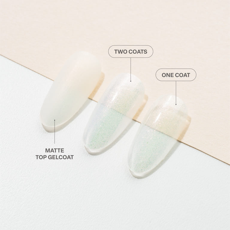 After prepping the natural nail and applying Base Gel coat, apply a layer of Light & Shadow Sheer Gel Couleur then cure for 30 sec LED. Follow with an optional second coat for a more opaque finish, curing for 30 sec LED. Finish with the Après Non-Wipe Top Gelcoat. When applying on Gel-X Tips, NO base coat is needed.