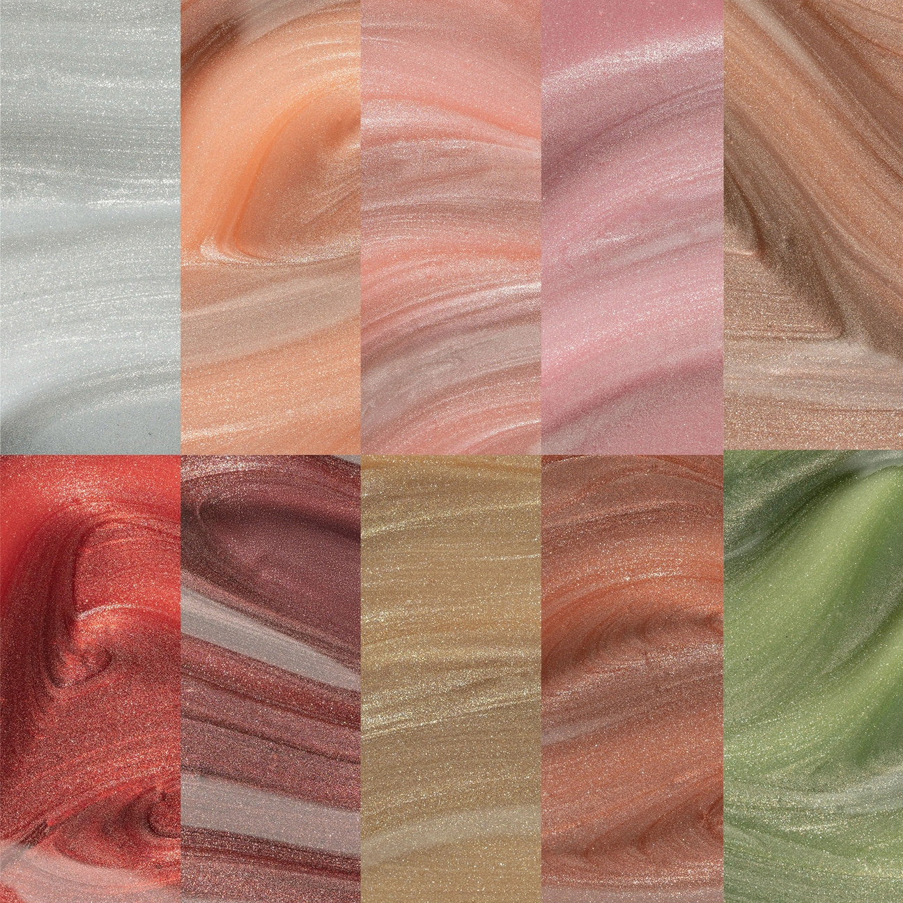 10 Pearlescent Shades: Ranging from iridescent white to toasty taupe, each Pearlescent shade creates an ethereal, iridescent effect with soft, pearl-like multi-dimensional color particles that catch the light from every angle.
