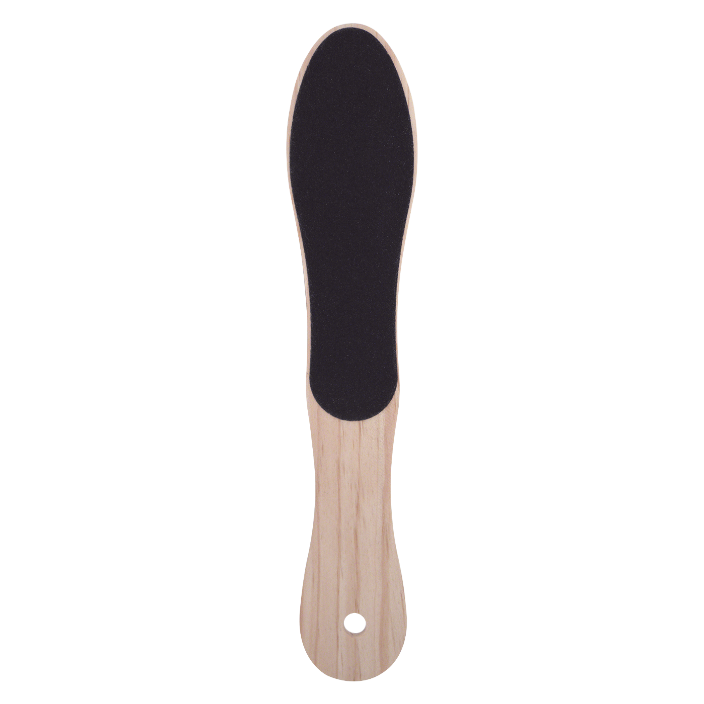 2-sided foot file has an extra thick, wooden handle and features 100 medium grit on one side and 180 fine grit on the other - to exfoliate, smooth and soften rough skin on the feet. Measures 10-1/2"L x 2"W.