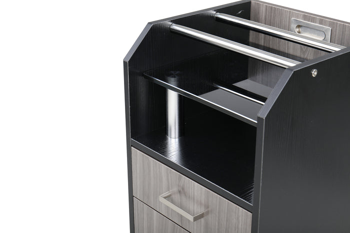 As part of our Glasglow collection, the Glasglow Pedi Cart/Trolley is a versatile piece that fits well with many different salon and spa decors. This modern looking piece can easily store away bottles, towels, pedicure implements, and even hot tools. This Pedi Cart comes with durable casters so it can easily move into position for your next pedicure or remain stationary next to your customers throughout the day. The Glasglow pedicure cart/trolley has been called sleek with a great quality finish from our buyers and we think you'll say the same.