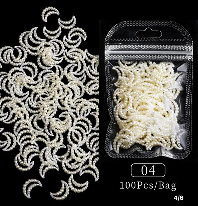 3D White Half Moon Pearls - Nail Decoration