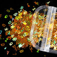 Mix bag of gold sequin letters for nail art decoration.