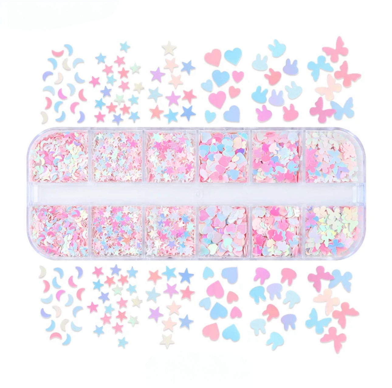 Shapes - Mini moons, mini stars, regular stars, mini hearts, bunny shapes, butterflies