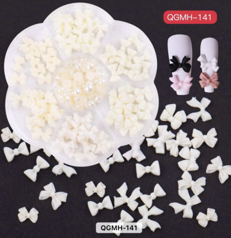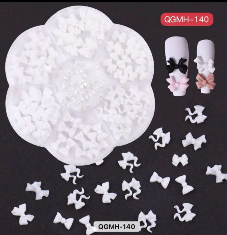3D White Bowties Pearls - Nail Decoration