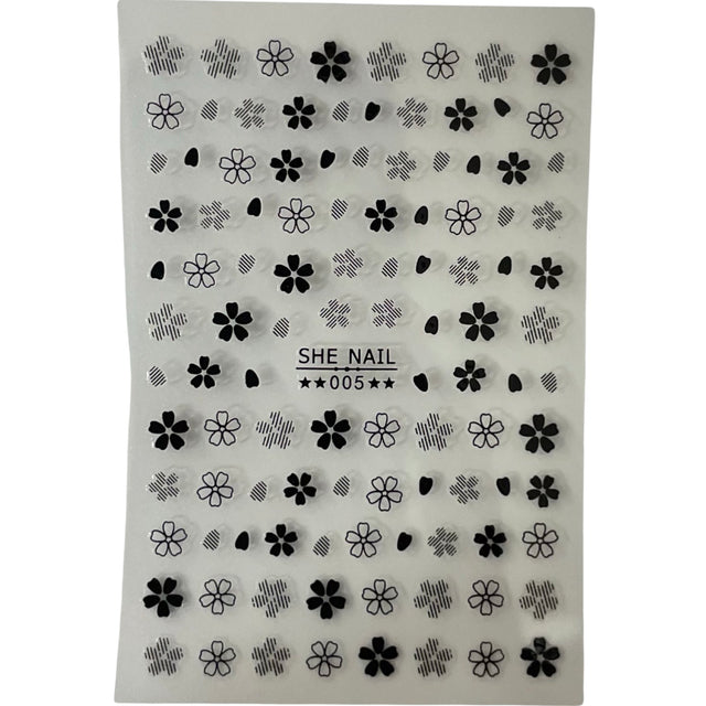 Nail Sticker - 005 Black Flowers