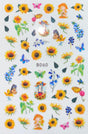 Nail Sticker-sunflowers, blue flowers, leaves, butterflies