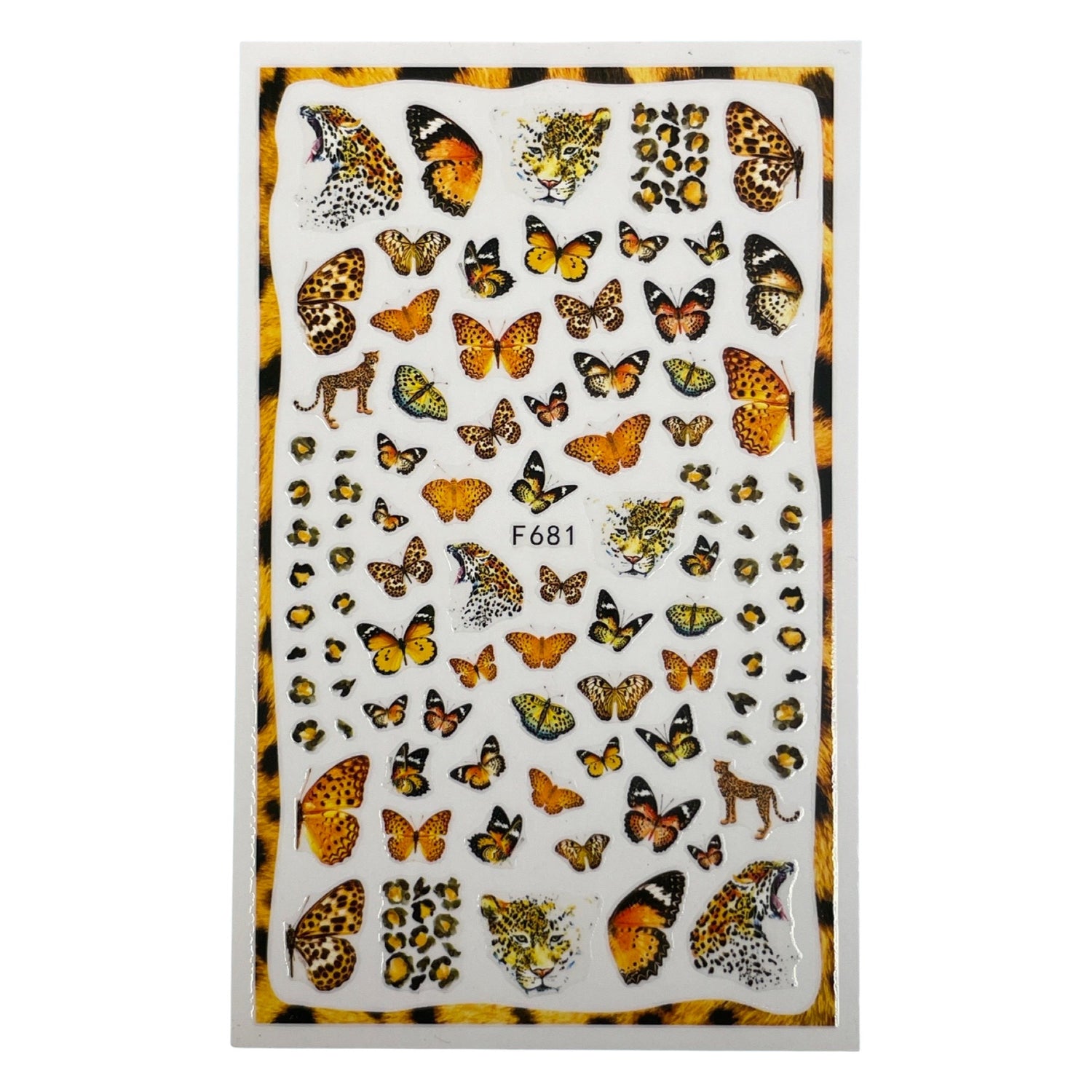 Nail Sticker - F681 Safari, Cheetah, Butterfly, Jaguar