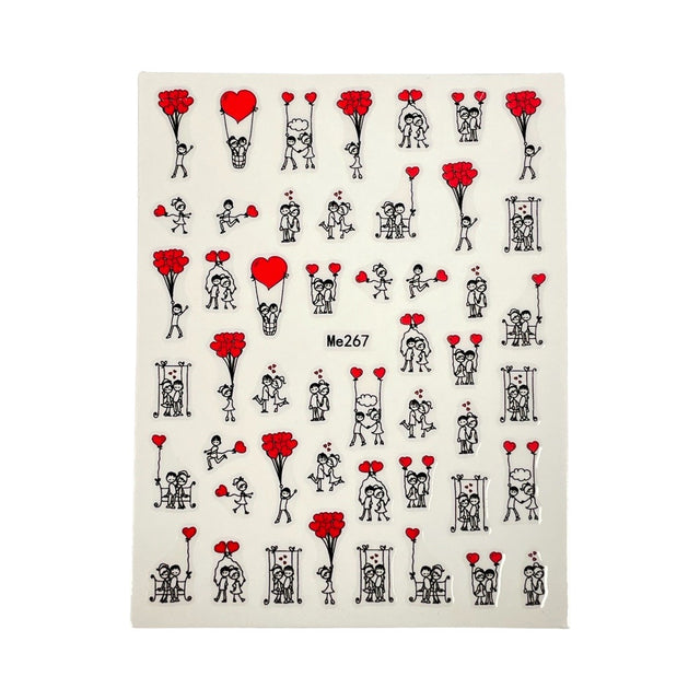 Nail Sticker with stick art, love, hearts ballon, couple