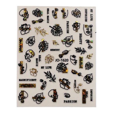 Nail Sticker - JO-1620 Black & Gold Palm Leafs | Motivational Words