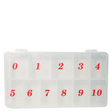 Each section of box is numbered from 0 to 10. Measures: 4-1/2"L x 8-1/8"W x 1-1/4"H.