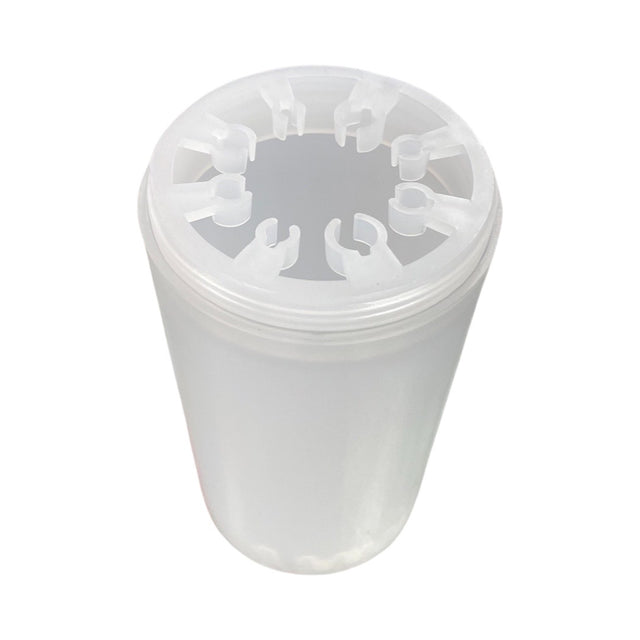 Includes 8 brush holders; small, medium and large. Prevents brush handles from having to be submersed in cleaning solution. Plastic grate on bottom of jar allows you to loosen acrylic from bristles of brush. Made from unbreakable plastic.