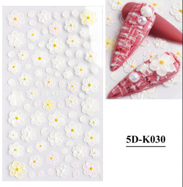 3D White & Pastel Flower Stickers - 5D-K030
