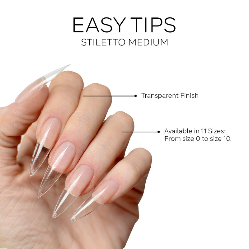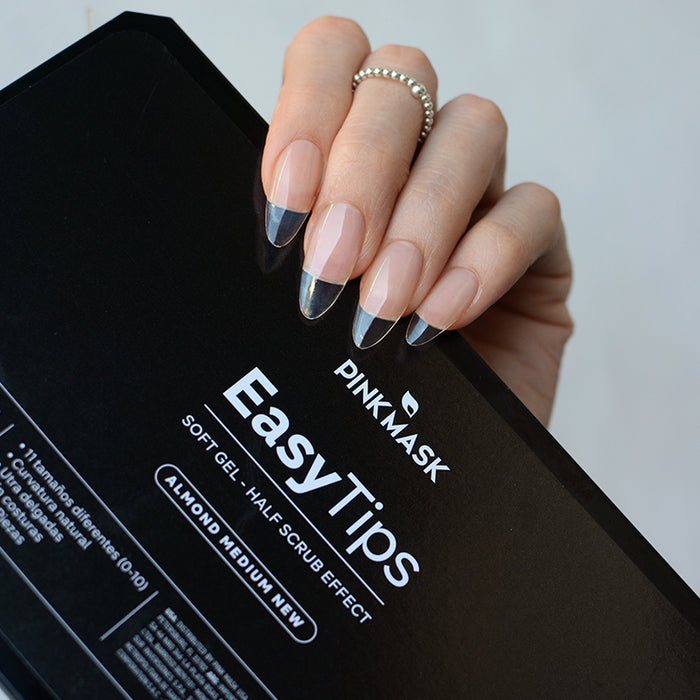 The Easy Tips - Almond Medium are transparent and pre-shaped gel tips, specially designed for Gel-X, soft gel, or press-on nail extensions. These innovative nail extensions offer a lightweight, easy-to-apply, and time-saving alternative for constructing or creating specific nail shapes. Their natural curvature and ultra-thin design allow for an optimal fit on the nails, and they can be trimmed or filed without damaging the nail structure.
