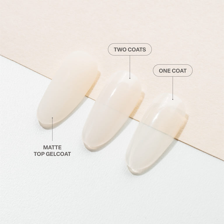 After prepping the natural nail and applying Base Gel coat, apply a layer of Light & Shadow Sheer Gel Couleur then cure for 30 sec LED. Follow with an optional second coat for a more opaque finish, curing for 30 sec LED. Finish with the Après Non-Wipe Top Gelcoat. When applying on Gel-X Tips, NO base coat is needed.