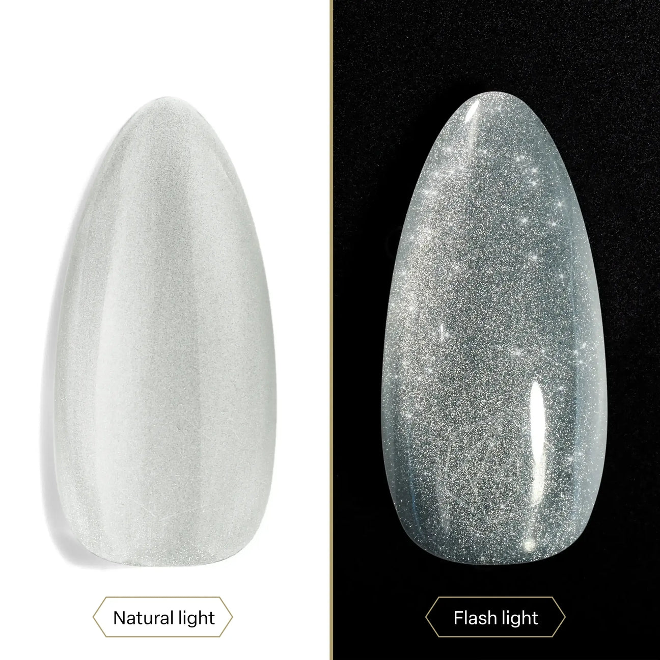 Astral Gel Couleur is a collection of 40 shades in 4 light-refracting, otherworldly finishes—Flash Glitter, Pearlescent, Velvet, and Shimmer Cat Eye. These streak-free, self-leveling formulas leave a unique energetic signature on the nail, empowering you to create looks that resonate on a spiritual level.