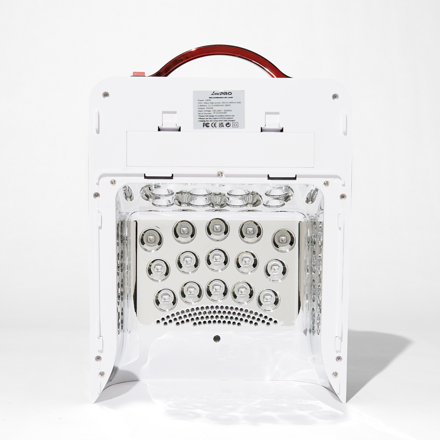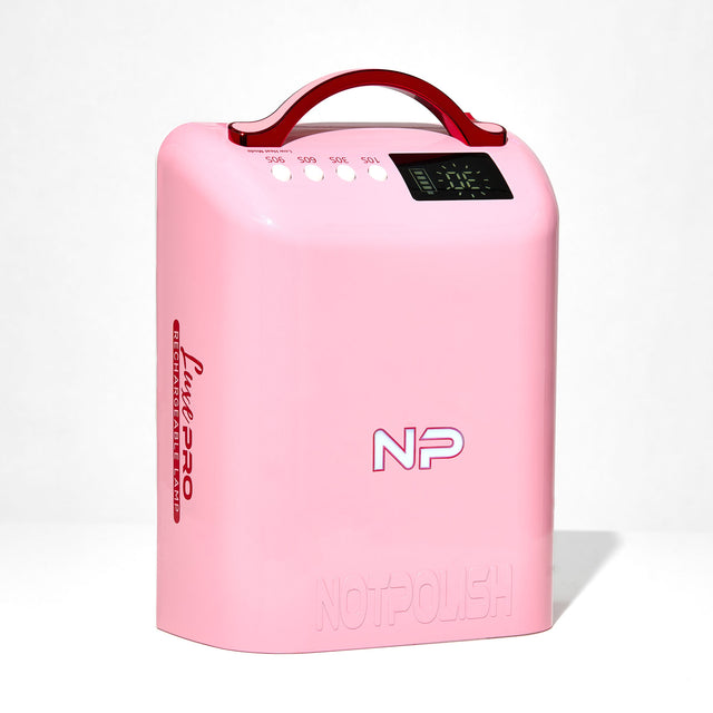 Introducing your newest obsession, LuxePro! Our innovative LED Lamp features an extended long design perfect for XXL nails, coated with our sexy signature red chrome. It holds 39 high quality LED lights with 100 watts, to insure your sets are fully cured, including those hard to reach spots like thumbs and pinkys! Did we mention its cordless and rechargeable, yes our lamp will give you 8-10 hours worth of unplugged battery life! We included a large LCD screen with 4 preset curing times, quiet auto detect, a detachable bottom piece perfect for pedicures and much more! Your Nail Game just got hot and luxurious with Notpolish LuxePro!