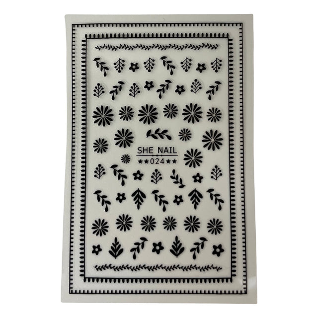 Nail Sticker- black leaves, black flowers, black vines