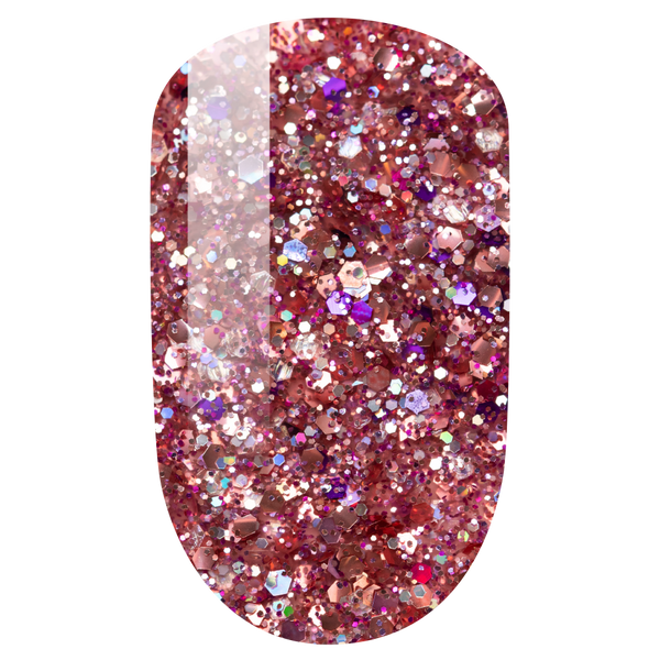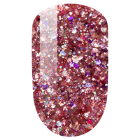 Sheer baby pink with pink hexes and silver and magenta microglitter.